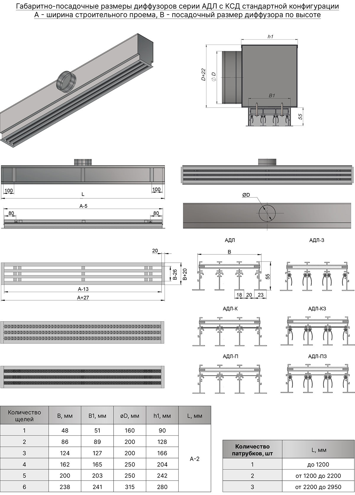 В данном виде диффузоров отсутствует клапан расхода воздуха, как и в АДЛ, но есть ламели, которые позволяют регулировать направление потока воздуха в помещение. Как правило, щелевой диффузор АДЛ-З применяется в системе кондиционирования. Могут быть самостоятельным изделием в виде одиночной секции или ее составной частью. После монтажа рамка решетки остается видимой, закрывая проем. Возможное количество щелей от 1 до 10.