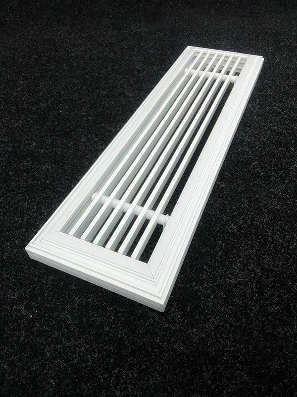 Используемые материалы. Щелевые решетки VLL-F и VLLS-F изготавливаются из экструдированного алюминиевого профиля АД31 по ГОСТ 22233-2018. По умолчанию корпус решетки окрашивается в стандартный белый цвет RAL 9016М матовый, а внутреннее исполнение в чёрный цвет RAL9005М матовый. По индивидуальному заказу возможна окраска в любой цвет по шкале RAL. Статическая камера изготавливается из оцинкованной листовой стали 0,4 - 1,5 мм в зависимости от размера и пожелания заказчика. По умолчанию все изделия поставляются в неокрашенном виде.