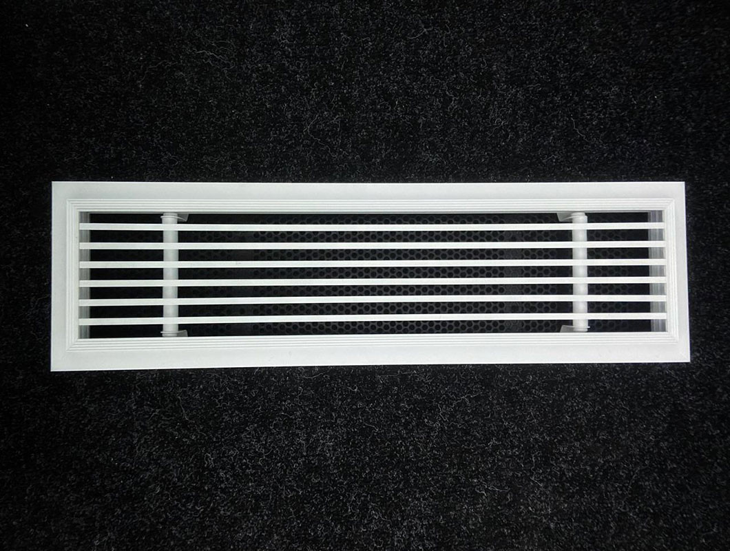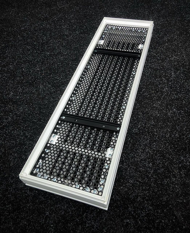 Используемые материалы. Щелевые решетки VLL-G и VLLS-G изготавливаются из экструдированного алюминиевого профиля АД31 по ГОСТ 22233-2018. По умолчанию корпус решетки окрашивается в стандартный белый цвет RAL 9016М матовый, а внутреннее исполнение в чёрный цвет RAL9005М матовый. По индивидуальному заказу возможна окраска в любой цвет по шкале RAL. Статическая камера изготавливается из оцинкованной листовой стали 0,4 - 1,5 мм в зависимости от размера и пожелания заказчика. По умолчанию все изделия поставляются в неокрашенном виде.